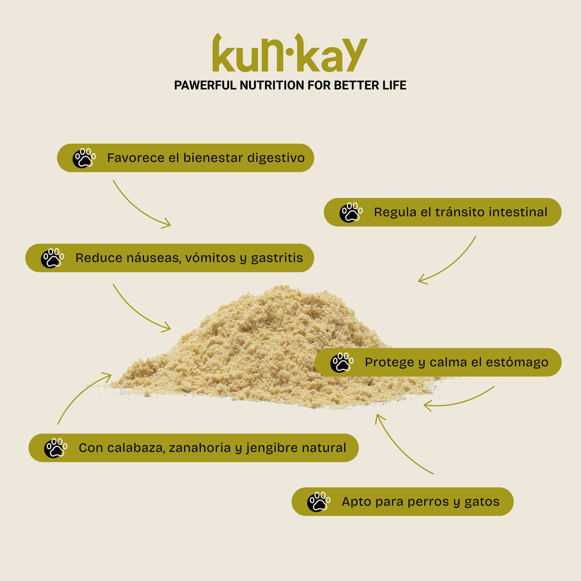 - Superyellowkun: Mischung aus Superfoods zur Förderung des gastrointestinalen Wohlbefindens. Liefert Ballaststoffe mit präbiotischen Eigenschaften, die den Darmtransit regulieren und den Magen schützen und beruhigen.