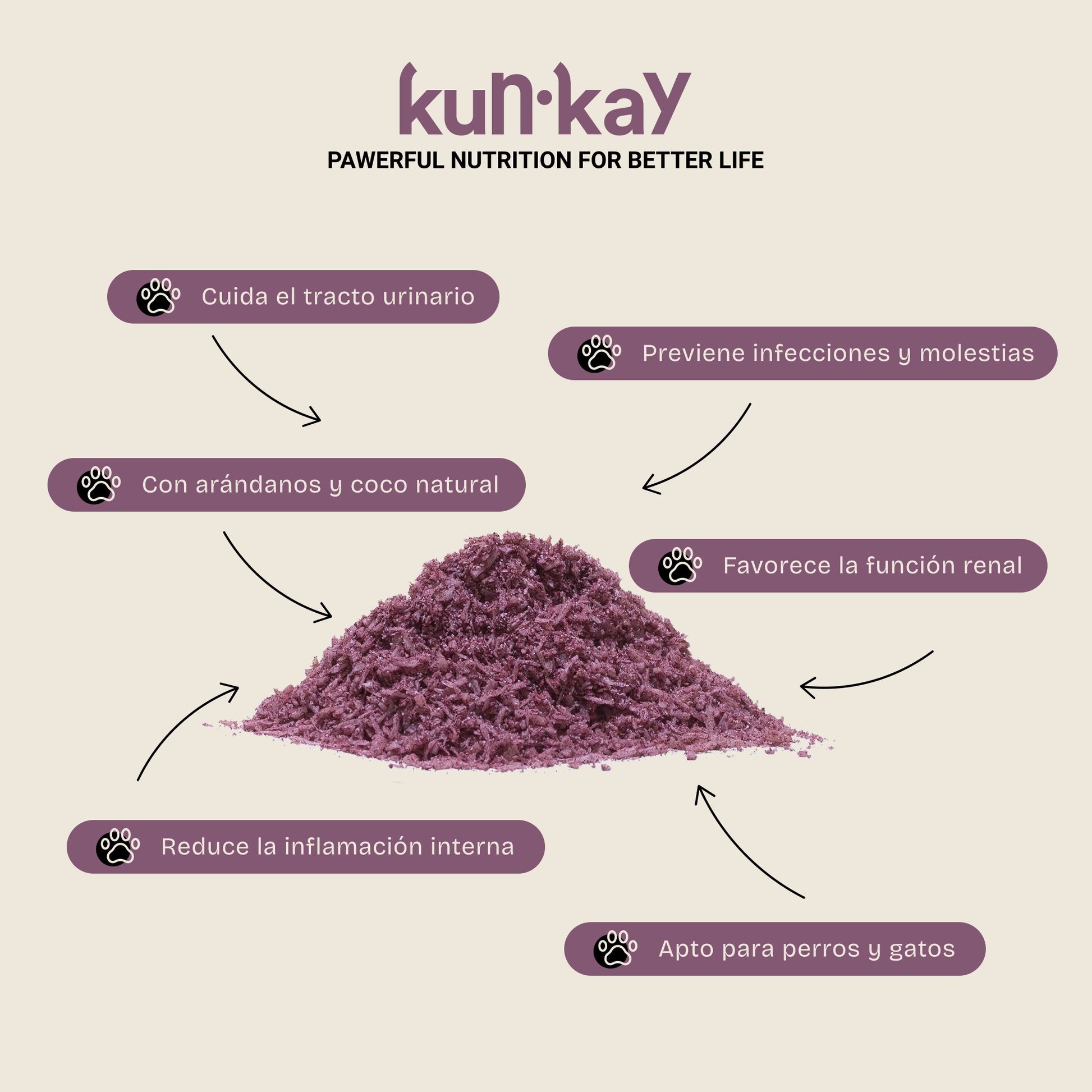 - Superpinkkun: Mischung aus Superfoods mit antioxidativen, entzündungshemmenden Eigenschaften und Unterstützung des Harntrakts. Verhindert und hilft bei der Behandlung wiederkehrender Infektionen des unteren Harntrakts (Zystitis und andere leichte Harnwegserkrankungen), verringert den proinflammatorischen Zustand des Tieres und erhält einen guten Gesundheitszustand.