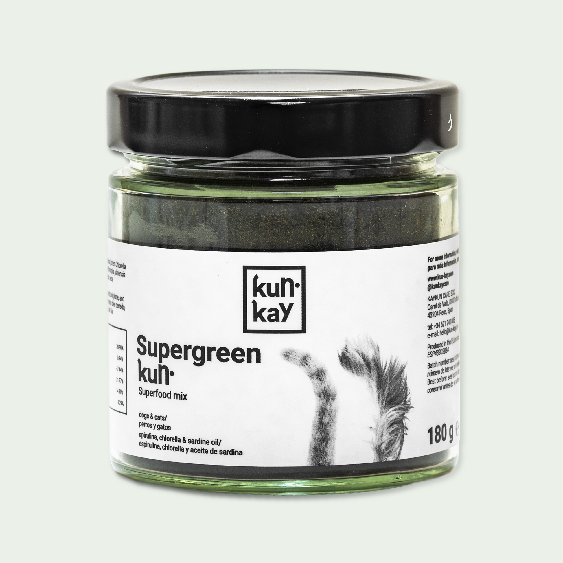 Para suplementar dietas caseras y comerciales: se puede alternar la administración de Supergreenkun con otros suplementos de la línea superfoods para asegurar una dieta completa y equilibrada.