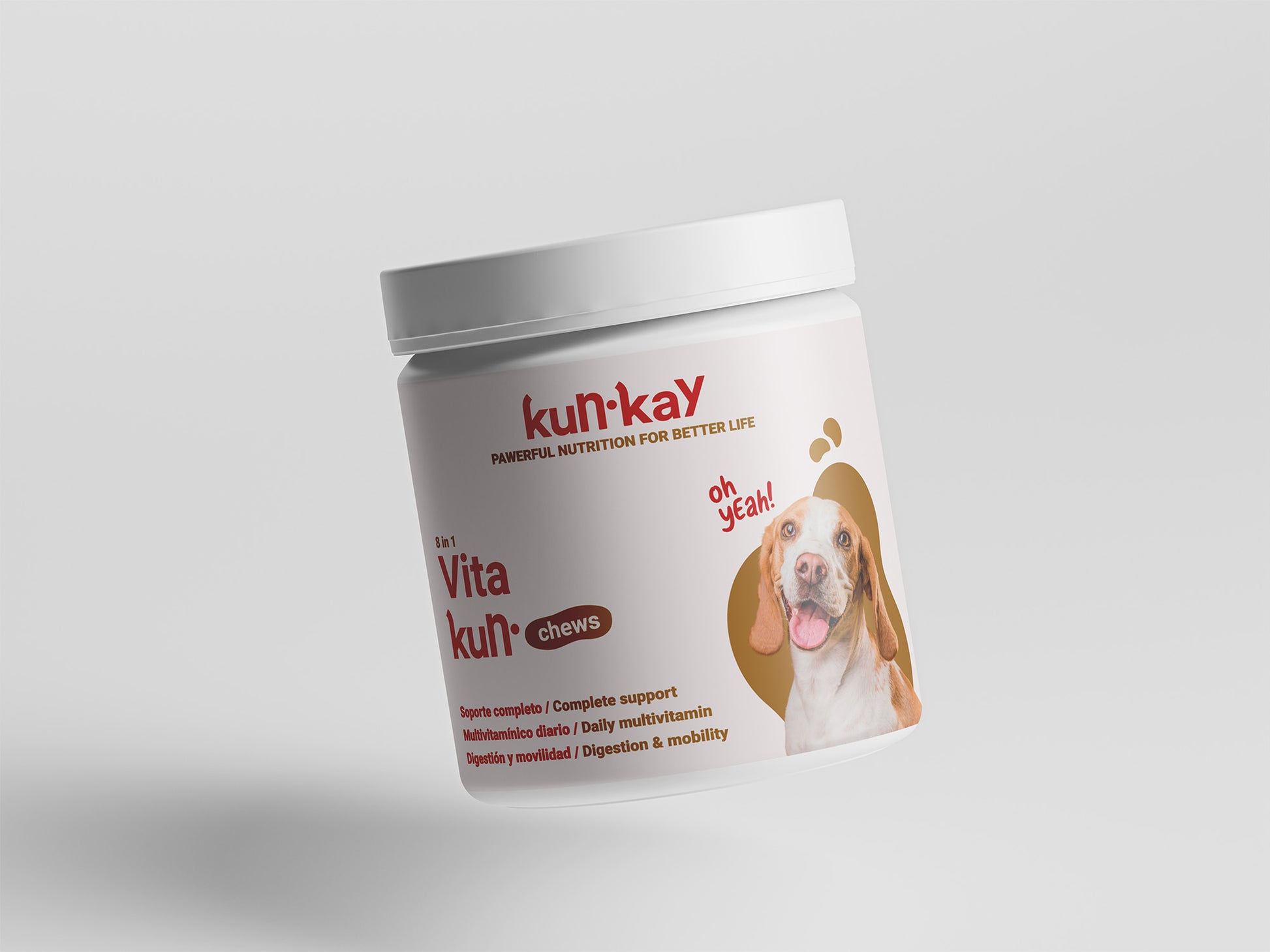 With VitaKun your dog gets essential vitamins and minerals, enriching their homemade or BARF diet, it is ideal for all ages and lactating, pregnant, or convalescent females, covers vitamin, macromineral, and micromineral needs without the need for calcium supplements and promotes health and vitality.