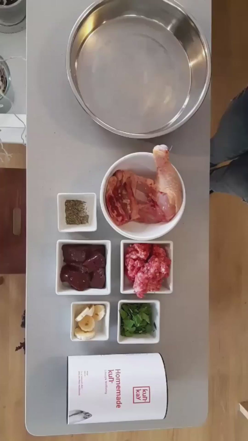 Dans le cas des régimes faits maison, nous recommandons également de supplémenter avec le Homemadekun pour garantir un apport correct en vitamines et minéraux.