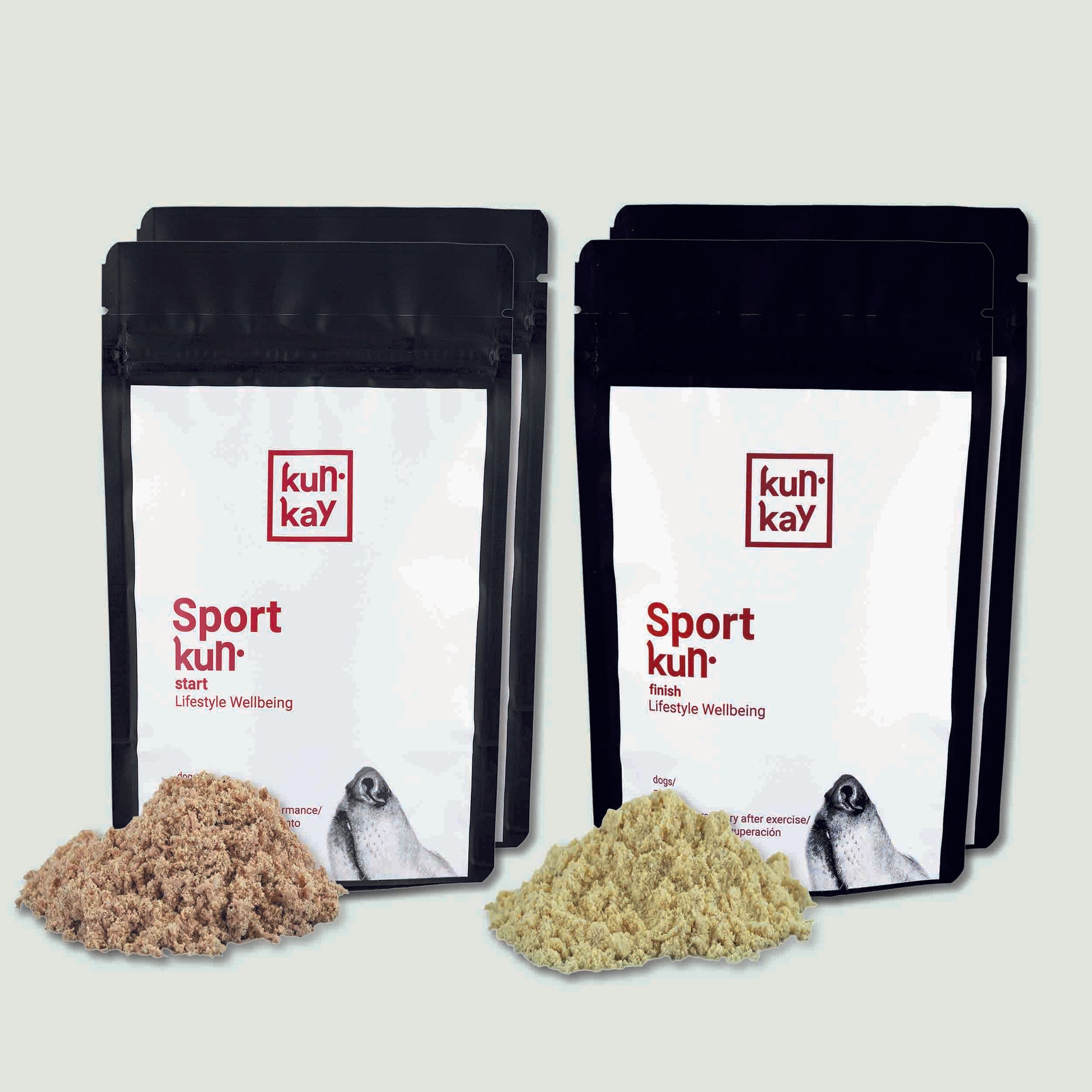 - Sportkun Finish: fórmula recuperadora que favorece la recuperación muscular y contrarresta el daño del ejercicio intenso en perros activos.
