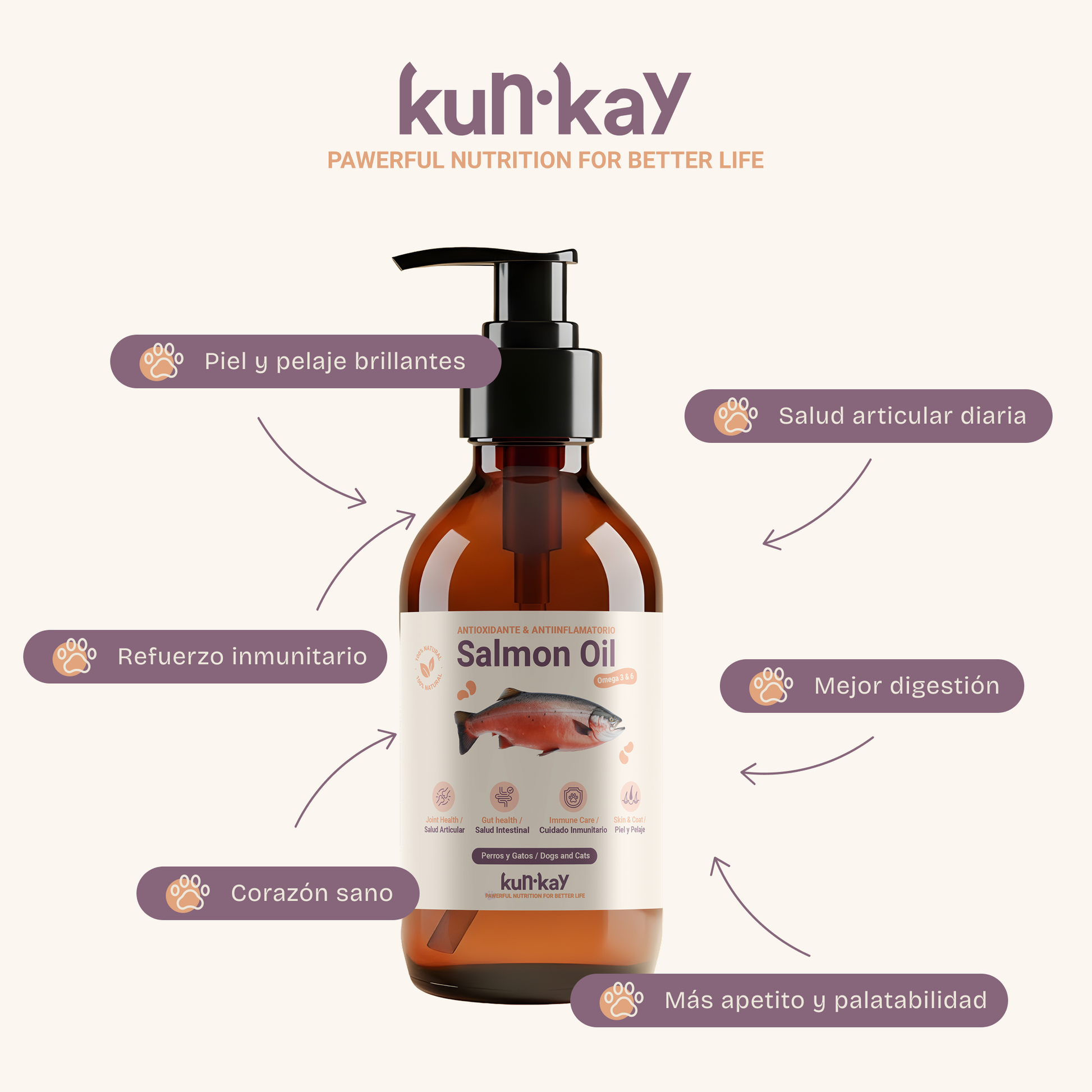 Fuente natural de ácidos grasos Omega 3 (EPA y DHA), que contribuyen al mantenimiento de una piel sana y un pelaje brillante. Ayuda a modular la respuesta inflamatoria, favoreciendo la salud articular y el bienestar general. Además, apoya la función cardiovascular y cognitiva, siendo un complemento ideal para reforzar las defensas y mantener la vitalidad en perros y gatos.